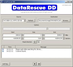 something is going wrong on what I've done I tried on a file that was readable on my image: myfragi returns this: 1 769865 6158983 624 f:\photos\PHOTOS~1\35ANSM~1.JPG in drdd, you wrote to x512 for the LBA start but values are in sector, so I have left the values from myfragi: start: 6158983 (sectors) - I can not write 6158983*512 = 3153399296, it doesn't fit in the software (only nine digit not ten) size: 624 (sectors) then : fsz c:\test.jpg 319488 and finally: dsfi c:\test.jpg 0 0 c:\image[3153399296-3153718784].dd and the image is unreadable (it was OK in windows explorer on my500gb.img) I've misunderstand something in the values for drdd thanks a lot