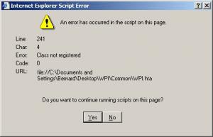 I am getting an error when I hover over the buttons on a default config. It's saying that there is an error on line 21 Char 4, Class not registered. This is on the WPI.hta file. Any help would be appreciated.