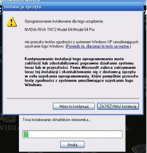 The drivers for TNT series aren't present in Graphic Driver pack C. You used version 7x.xx The last drivers for TNT TNT2 are in 6x.xx In 71.81 or 71.89 [the ones you used] starts ; Localizable Strings NVIDIA = "NVIDIA" NVIDIA_NV10.DEV_0100.1 = "NVIDIA GeForce 256" NVIDIA_NV10.DEV_0101.1 = "NVIDIA GeForce DDR" NVIDIA_NV10.DEV_0103.1 = "NVIDIA Quadro" NVIDIA_NV11.DEV_0110.1 = "NVIDIA GeForce2 MX/MX 400" NVIDIA_NV11.DEV_0111.1 = "NVIDIA GeForce2 MX 100/200" In 66.93_win2kxp_international.exe inside of nv4disp2.inf [NVIDIA.Mfg] %NVIDIA_NV04.DEV_0020.1% = nv4_TNTxClass, PCI\VEN_10DE&DEV_0020 %NVIDIA_NV05.DEV_0028.1% = nv4_TNTxClass, PCI\VEN_10DE&DEV_0028 %NVIDIA_NV05.DEV_002C.1% = nv4_TNTxClass, PCI\VEN_10DE&DEV_002C %NVIDIA_NV05.DEV_0029.1% = nv4_TNTxClass, PCI\VEN_10DE&DEV_0029 %NVIDIA_NV05.DEV_002D.1% = nv4_TNTxClass, PCI\VEN_10DE&DEV_002D %NVIDIA_Win2KDualView% = nvDual, DISPLAY\nvWin2kDualView %NVIDIA_MultiView% = nvDual, DISPLAY\nvMultiView ; Localizable Strings NVIDIA = "NVIDIA" NVIDIA_NV04.DEV_0020.1 = "NVIDIA RIVA TNT" NVIDIA_NV05.DEV_0028.1 = "NVIDIA RIVA TNT2/TNT2 Pro" NVIDIA_NV05.DEV_002C.1 = "NVIDIA Vanta/Vanta LT" NVIDIA_NV05.DEV_0029.1 = "NVIDIA RIVA TNT2 Ultra" NVIDIA_NV05.DEV_002D.1 = "NVIDIA RIVA TNT2 Model 64/Model 64 Pro" NVIDIA_Win2KDualView = "NVIDIA Dualview" NVIDIA_MultiView = "NVIDIA Multiview" DiskID1 = "NVIDIA Windows 2000/XP Driver Library Installation Disk 1" Last 8x.xx ; Localizable Strings NVIDIA = "NVIDIA" NVIDIA_NV11.DEV_0110.1 = "NVIDIA GeForce2 MX/MX 400" NVIDIA_NV11.DEV_0111.1 = "NVIDIA GeForce2 MX 100/200" NVIDIA_NV11.DEV_0113.1 = "NVIDIA Quadro2 MXR/EX" NVIDIA_CR11.DEV_01A0.1 = "NVIDIA GeForce2 Integrated GPU" IN the best case scenario you should use 66.93_win2kxp_international.exe for NVIDIA_NV04.DEV_0020.1 = "NVIDIA RIVA TNT" NVIDIA_NV05.DEV_0028.1 = "NVIDIA RIVA TNT2/TNT2 Pro" NVIDIA_NV05.DEV_002C.1 = "NVIDIA Vanta/Vanta LT" NVIDIA_NV05.DEV_0029.1 = "NVIDIA RIVA TNT2 Ultra" NVIDIA_NV05.DEV_002D.1 = "NVIDIA RIVA TNT2 Model 64/Model 64 Pro" 71.89_win2kxp_international.exe for NVIDIA_NV10.DEV_0100.1 = "NVIDIA GeForce 256" NVIDIA_NV10.DEV_0101.1 = "NVIDIA GeForce DDR" NVIDIA_NV10.DEV_0103.1 = "NVIDIA Quadro" 84.21_forceware_winxp2k_international_whql.exe for NVIDIA_NV11.DEV_0110.1 = "NVIDIA GeForce2 MX/MX 400" AND LATER up to 7900... You shoud use 66.93 with caution [modify inf by leaving only TNT and TNT2] as it has WHQL for GF 256 and higher - so the users of ex 6600 could have 66.93 instaled insted of 84.21 Of course using 3 different sets take so much space... you could use only 66 and 84 The users of geforce 256 and DDR shouldnt see much difference I think. I attach 4 jpg - 2 from after instalation of your latest pack [no driver - only microsoft default and HWID] 2 from instalation on 66 [ 1st no whql info 2nd after instalation all OK] attachments last one
