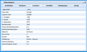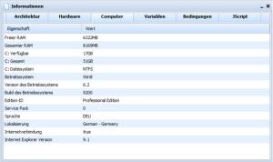 I would use "Pro" instead of "Professional Edition", as "Pro" is the original name by Microsoft. For the IE thing I ran into a problem with shortening the result to 3 digits, as it then shows "10." instead of "10.0". I now tried function getIEver() { position="wmi.js"; whatfunc="getIEver()"; if (szOSVerCache == "Win8") { IEver=WshShell.RegRead("HKLM\\Software\\Microsoft\\Internet Explorer\\svcVersion"); IEver=IEver.substr(0,4); } else { IEver=WshShell.RegRead("HKLM\\Software\\Microsoft\\Internet Explorer\\Version"); IEver=IEver.substr(0,3); } return IEver; } But this only works to determine if it is IE10 which ships with Windows 8, so I guess this is perhaps better: function getIEver() { position="wmi.js"; whatfunc="getIEver()"; IEver=WshShell.RegRead("HKLM\\Software\\Microsoft\\Internet Explorer\\svcVersion"); if (IEver.substr(1,1) == ".") { IEver=IEver.substr(0,3); } else { IEver=IEver.substr(0,4); } return IEver; } It checks, if the second character of the svcVersion string is the "." and decides to cut the string down then. Shows "10.0" for me and if I change the reg value to 9.xxxx it Shows "9.0". Does this svcVersion exist on Win 7 PC e.g., too? -