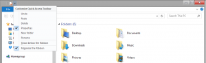 ... and one more post, with a link to the "OldNewExplorer" tool here that allows you to remove the Ribbon in Windows 8.x, thereby allowing caption glow in all Explorer windows: http://www.msfn.org/board/topic/170375-oldnewexplorer-make-your-81-explorer-work-like-win78-one/ Cheers! (Peter)