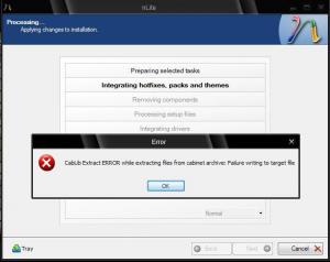 EDITED FOR GRAMMATICAL ERRORS AND IMAGE EXCHANGE by poster. Well, see topic isn't locked, as of yet anyway, so I'm going to update my progress and see if anyone can/will help with a few glitches. Will start new topics if prefer and allow me to. Went ahead and made a disc with nLite that turned out OK except for a couple things. I decided since I don't have a clue how to do what I really wanted to do, I just modified it as follows: 1) I slipstreamed SP3 2) I added 'OnePiece_Windows_XP_Post-SP3_UpdatePack_v4.4.0_ENU' & 'onepiece_repair_ie8_cosmetic_problems_addon'. 3) Added my drivers. 4) Removed items such as: MSN, Messenger, Security Center, Outlook Express, Internet Games, Movie Maker, etc... 5) A few tweaks Result was functional but not as planned and with errors on creation that not sure if affected usability as follows: 1) Had 3 errors during integration of the Onepiece Update Pack. Same error and said it was related to not being able to unpack cabinets or something. See attached pic. 2) SATA Drivers didn't work (Windows didn't recognize my drive on install attempt without using floppy). Tried redoing disc twice, once with/once without that last option in same step as where you select to patch theme disabled. All other drivers installed correctly. Would like to know if can manually add SATA drivers to resulting iso, and if so, best way? 3) Was going to remake again to add drivers for my laptop as well, but .iso is already 677MB, so afraid I'll get to close to maxing out the CD if add much more. Seems like I've read it's not a good idea to use a DVD for XP install disc, correct? 4) Noticed install hung up a looooong time at 23 minutes, but finally finished, so guess not an issue. Anyway, if anyone is willing/able to help, I'd greatly appreciate it. 'Last Session' log attached if needed. THANKS!!!! Last Session.ini