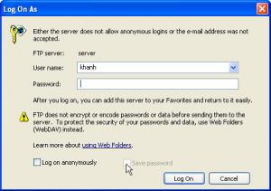 In others Windows XP (sp2) system, when I use ftp://server command, i can click on "save password" check box but in my pc, the box is grey/disabled. (when I am to enter username and pwd for the site) I need YOUR advice and instructions to turn it on.