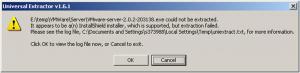 uniextract.txtHello, I am currently trying to extract the VMware Server 2 Installer (VMware-server-2.0.2-203138.exe) so I can load the files from the MSI executable, However every time I do I get this error that I posted down below. Any and all help is appreciated.