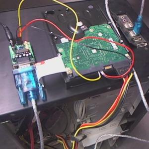2. Hi, i am really confused i've read this post and also this post i then purchased this converter http://www.ebay.co.uk/itm/260836151037?ssPageName=STRK:MEWNX:IT&_trksid=p3984.m1439.l2649 and this cable http://www.ebay.co.uk/itm/250653067355?ssPageName=STRK:MEWNX:IT&_trksid=p3984.m1439.l2649 ny steps: 1. connected the cable with the converter 2. performed the loopback test succesfully 3. connected the tx(hdd) to rx(converter), rx(hdd) to tx(converter), gnd(hdd) to gnd(converter), sata power supply from same pc and added the card on the motor 4. waited for the motor to stop 5. started hyperterminal or putty (under w7) 6. entered the correct values COM3, 38400, 8, 1, N, N and connectd 7. when i type Ctrl + z there is no response 8. reversed the rx and tx but i get the error with the weird characters 9. reversed again but no response 10. removed gnd no response 11. removed convertor's power supply got the error with the weird characters (weird error) (my setup) any ideas apreciated