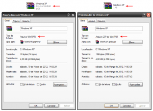 I'm after a File type for ZIP files, not Description. ...yes I know that. ...but WinRAR correctly provided this info to Explorer, but Explorer does not display it. Doesn't matter if is a ZIP file build by WinRAR or build by XP own ZIP processor, I try all of this. Take a look at my screenshot. Something is missing in the icon in "tiles view". Sure that in "Details view" a File type is properly displayed but not in "tiles view". Even when I install Windows XP from scratch (SP2/SP3) the built in XP ZIP processor "Compressed (zipped) Folder" does not display the tag in "tiles view". Every file has to have a File type tag so why not ZIP files? Don't use *.exe, use *.zip and *.rar files to see what I'm talking about. Please perform an experiment like having in the same folder one ZIP file, one RAR file, one TXT file and one JPEG file. Now switch between "tiles view" and "Details view". Now you have an ideia of the issue. In "Details view" the Type description is displayed for all files. In "tiles view" the icons displayed the File type except for ZIP files (XP only). Sorry for not being more explicit for you to understand. And thank you for your time!