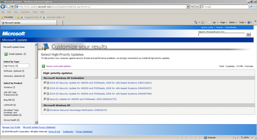 Sure you misunderstand POSReady (KB4134651, KB4093257, KB4087398, KB4034775) and Win XP (KB2934207, KB905474, KB923789) are the update deliberately ignored Things here I want to say: "When the update check, no longer displays the results of the Microsoft Windows XP Embedded list". Say in other way "One of the updates released in June, 2018 seems to have blocked the POSReady hack". It should be up to date: KB4134651, KB4093257, KB4087398, KB4034775 but not here. Note: no hidden updates