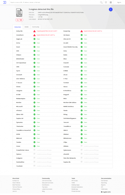 I used TortoiseGit to access the Git Chromium repository and incidentally Kaspersky warned me of the security risk in the file: ...\src\third_party\WebKit\LayoutTests\images\resources\crbug702934.png Exploit.Win32.CVE-2013-2977.a Sample file: crbug702934.png UnRAR Password: www.msfn.org crbug702934.rar