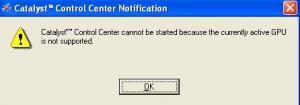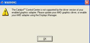 Hello, The problem isn't in fact the error messages from CCC, but the yellow mark of the Display Adapter. Possible that the CCC error message is only a consequence, I don't know. I removed CCC, and let the drivers. I have no more error messages, but the yellow mark is still there. Gabriel
