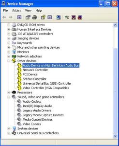 Hello, Thanks for help. It seems that the problem is fixed partially. Sound, video and game controllers are OK, but I still have no sound. There were 2 devices in fact, the second is Audio Device on High Definition Audio Bus: Hardware Ids: HDAUDIO\FUNC_01&VEN_111D&DEV_76D9&SUBSYS_103C183E&REV_1001 HDAUDIO\FUNC_01&VEN_111D&DEV_76D9&SUBSYS_103C183E PS : a lot of devices are not recognised, but the sound is essential. Thanks, Gabriel