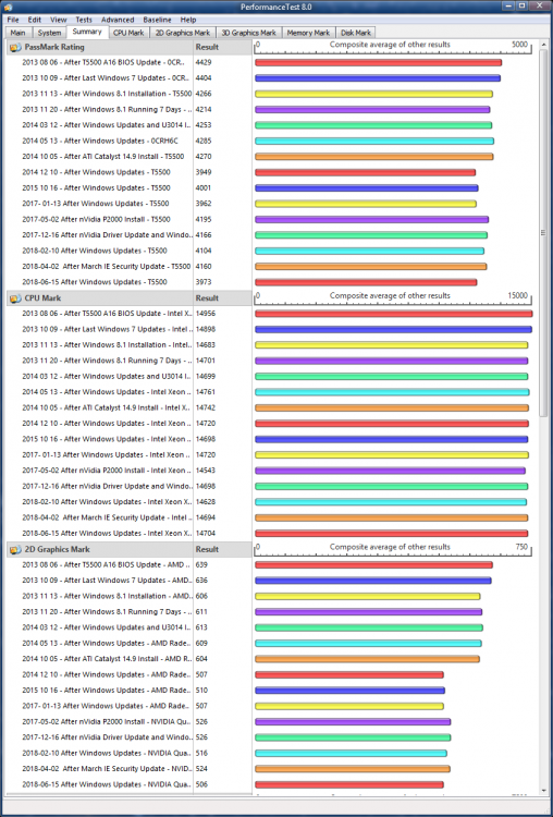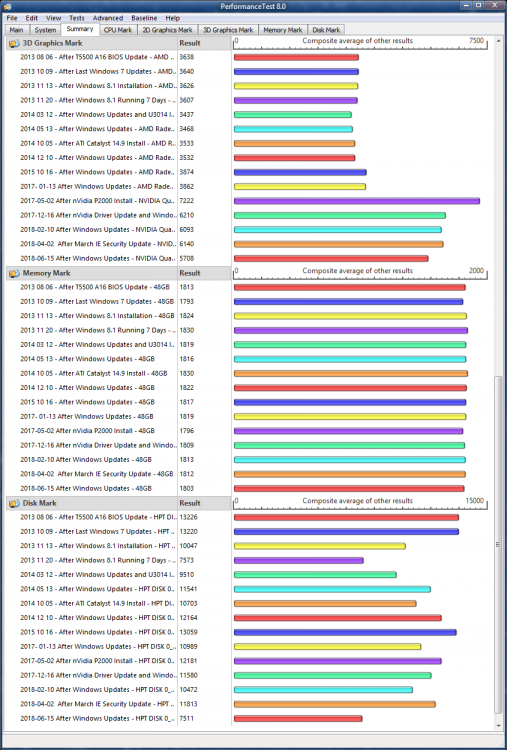 Some benchmark results attached. Key things to look at: CPU and RAM benchmarks hold steady. This is not surprising - the hardware is the same. Windows 8.1 degraded (and made less consistent) the I/O benchmarks. This, however, was not really reflected in real world benchmarks, and the Advanced Disk Benchmark in the Passmark software (which simulates real usage) indicates that the overall I/O throughput is at its best levels ever at about 1700 MB/second. -Noel