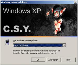 hallo xpero i just forgot somethin i told you about the "corporate identiry integration" i tried out some weeks ago so while i worked on this project i tried something out with my msgina.dll on my home machine - and it worked so i thought about using bigger images in msgina.dll - and i tried out to use a "double hight" image an the result --> yes it worked - so at the moment my msgina has a double hight logon and logoff picture you must keep the 423 pixels in width but the hight is variable - msgina will fit the logon and logoff so if you like to create a "logon to this xpize powered windows xp" lgon in msgina or something like that, just do it *gg* - i know you are great at photoshop, so something like that should not be a problem this msgina is experimental, i just tried a little bit out be careful: if you use a tripple hight picture, the logon and logoff is not correctly displayed in safe mode, because of 640x480 limitation (i know, there is a registry fix, but i do not use this) just look forward yergling