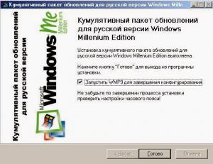 Hello everybody! Trying to install & configure fully updated Windows Me system. Does any cumulative pack exist that installs all Me updates by Microsoft, including, for example, DirectX 9.0c November 2006 and all hotfixes to it? I've included some screenshots of such sort of pack for the russian version of Windows Me, but I haven't found retail boxed russian version of the system, so I need the english one. Existing Unofficial SP for Me is buggy: for example, system information tool stops working after applying it (and includes only hotfixes without updating WMP, IE, etc). If such sort of package doesn't exist, please help me to create the complete list of all the components, that needed to be installed / updated, and all hotfixes to them. What russian package includes: https://drive.google.com/file/d/0B70CwzY39DZ-RkgzUUlydUNXQ2M/edit?usp=sharing Thanks!