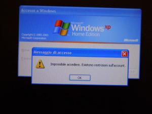 Yeah, also what Ponch said (did you password protect that during Unattended Install?). And what jaclaz said. Yet, you say neither of the Accounts have (correction - "had") a Password?  Inconceivable! What did you do to your install that prevents logon by a simple click-of-the-icon-on-Welcome? I really don't know, and could you say me why is inconceivable to have no password?  What do you mean "problems"? Read the guide: http://diddy.boot-land.net/grub4dos/Grub4dos.htm Particularly this page: http://diddy.boot-land.net/grub4dos/files/install_windows.htm#windows1 and add grub4dos as an option in boot.ini. Then follow the instructions on: http://www.sherlock.reboot.pro/passpass-bypass-the-password/ jaclaz Thank you, but probably it's too difficult for me to follow the instructions; when I'll have more time, I'll try again. However, it seems to me, that if Winlite has the same options of XP, including the repair of a previous installation, probably we can say that it is a bug. gius