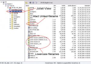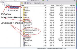 I'm sorry, it seems I erased Bugfix-Version 4.5.iso to save diskspace. I can't look it up anymore. However, in my nlite-temp-folder (source for my iso-builds) \I386\cdrom.sys is one of the view exceptions of lowercase-files. Almost everything else is uppercase there. The fact I get Umlaute in bugfix4.8 is propably due to the joliet-extension then (it uses ISO-3). Windows-Explorer reads all foldernames properly. In textmode I don't need Umlaute. So no problem here. mkisofs --versionmkisofs 3.00 (i686-pc-cygwin) Copyright (C) 1993-1997 Eric Youngdale (C) 1997-2010 J▒rg Schilling chcp cp850That's not enough. In addition I had to switch Codepage in Notepad++ to cp850 to save the file in proper format. I don't wanna modify my HDD-files. There are propably good reasons why some files are lowercase and most of them not. Or do you think nlite made mistakes during integration of hotfixes?! Renaming all of them was a non-reversible operation. Not sure if this is off-topic: At end of my RunOnceEx.cmd I reactivate windows file protection (without setup is faster). It shows up then and wants to replace files. It doesn't accept my nlite-ISO as original CD. Is this usual or could it be related to the filesystem as well? Edit: Just reading jaclaz' post: I tried no-lowercase + RockRidge in V4.2. However, it's using ISO-4 instead of ISO-3. Do you mean I should try: ISO-3 + NO Joliet + RockRidge + No lowercase or: ISO-3 + Joliet + RockRidge + NO lowercase Can the finally installed Windows-XP read RockRidge-DVDs?