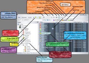Allready posted @ Windows 10 BuildIn Feedbackfunction: -> Personalisation -> Other Problems - like it there if you agree ! i spend a lot of time to finish this detailed Feedback ! Update: 5.2.2015 Before we begin: Design info: There a 7 Types of Users (i see) with different needs, none of them wanna be forgotten ! - Tablet Small View - Tablet Big View (for people who cant see so good anymore), - Desktop Minimalistic Version - for people who sit close to the Screen - Desktop Middle Version for people using BIG TV - Desktop Big Version (for people who cant see so good anymore) - Audio Control for Blind People - Visualized Sound Alert for Deaf People -------------------------------------------------------------------------------------------------- So, lets Start: -------------------------------------------------------------------------------------------------- Shell/Design: Give me please 1a) Explorer Tabs (like QTTabBar_XP see Pic) 1b) AlwaysOnTop-Button (like QTTabBar_XP see Pic) 1c) Folder Icon Color (like Icolorfolder_XP see Pic) 1d) Folder Background Picture via Desktop.ini (see Pic from XP) 1e) .msstyles reactivation, with UxTheme Patch for Community .msstyles 1f) Aero Glass (Transparent window Boarders) 1g) Possibility to mark Files with a color via Entry in Desktop.ini (in this way its possible to remember things like in books with colored paper stripes, and color marker) 1h) Active Desktop (it took me a long long time to build 3 different unfinished HTML desktops who have interaction with the background picture, build in Mediaplayer, quick notes etc...) 1i) Library's: Get Rid of Music, Pictures, Own Files, and all that crap - Clever People don't like saving Files on Systempartition ! (Or: Let the user Choose where this Folders are Stored Physical !) 1j) Small Icons Everywhere (Close, Minimize, Maximize Buttons are to big) - msstyles support should fix it (**** MS there is a whole Community on Deskmodder, Deviantart, and much more, and in every Windows Version they try to made it perfect - but YOU make it so hard for us Users - to Personalize Everything - its like you throw a tree between our legs....) 1k) Need CLASSIC START MENU and DESIGN ! (that Startmenu who takes 40% of my Desktop PC Screen is a funny joke - you cant mean that serious !) 1l) Fade/Dimm Everything except the Active Window (means that always the Active Windows is Highlighted - see Ghoster v1.2 from "Skrommel") File system: Change Please 2a) Optional install on exFAT File System for Users who don't like Junctionpoints & Rightsmanagement & FileLocking Reasons: - NTFS JunctionPoints/Hardlinks: I cant trust File-trees anymore: Now, the Explorer get a long Nose like Pinocchio ! (File-trees was such a big step in the Computer History, Logic like a good sorted Library... - but now, its gone...) If it is really Necessary for Old Programs you can Plug-IN a Mountpoint via Subst.exe in Application Compatibility - there is no need for Hardlinks ! - Rightsmanagement sucks !: I got the Message so often, and i don't know how, but i even get problems on a Fat32 Windows Xp, when i copied files from the Win7 64 NTFS Laptop - sometimes it glues like s*** on the shoes... 2b) FileLocking: I hate hate hate hate hate hate hate hate it !!!!!!!!!! (just to be clear at this point - i don't like to restart my PC cause i wanna delete a file who is used by explorer.exe) (probably fixed see Post 5 - big thx !!!) 2c) File/Harddrive Encryption with Options of Choosing Encryption Format and Rate (SHA512, ...) 2d) Reduce your 50.000 Folders (with 4 Files per Folder) to a maximum of 99 Folders - big thx ! 2e) If Windows Setup is installed on a SSD there should be the Option to make a RamDisk (Unlimited + Hybridoption) for Temp Files (Browsing, Updates, Extraction, should not destroy the SSD Life !) 2f) NEED ciadv.msc to put out Harddrives completely from Indexservice 2g) Search is Terrible ! (i like the Advanced Search from Windows Xp without Assistant - i don't wanna search in Internet with this tool (for Internet i use a Browser !!!) - and i don't wanna wait ! - got a SSD here ! - The Thirdparty Tool Agent Ransack is able to find good and quickly - but normally i really prefer that XP Search ! (the Quick Search in Windows Explorer for the active Folder is fine, but QTTabbar on XP did it better !) Localization 3a) Please take the: FALL-BACK ON ERROR Language out of the Files - and move it to mui files as the others (or go back to real localized version) 3b) Don't Translate Foldernames ! Its totally weird that i cant trust the Name of a Folder ! (or Localize them although !) Compiling the Source Code - A clean Compiled Code (save up to 70% per file !!!), where following is removed: 4a) Comments (the ; Comments are not for Normal Users, so there is not need to be compiled !) 4b) Doubled vacancies, doubled blank lines, vacancies on end of line, Tabulators (no need for this !) 4c) Color Palette Optimizations (a Pic with 4 Colors and a Alphachannel don't need to be saved with a 16,7 Mio Color Palette ! 4d) Doubled Ico/Cur/Gif/Ani/Wav/Png/Bmp/Avi Files (thousands of doubled resources blow up the OS Size like a balloon) If you delete doubled Resources, you need a dll Library like Shell32.dll (its impossible without using a Library file) - an it would be Perfect when this file get Permission to be Modified, and if its Documented which Icon is for what... (for easy Shellpack making like FlyAKite - people would love it !!!) Setup 5a) More Options for Personal Install and for Choosing what Apps are needed: Newsmessage, Weather, OneDrive, .... - i really don't need it ! 5b) Wim Image & Mounting: it tooks hours, days, months, years - everytime i try to change the Wim Image it feels like starving ! - The old inf based setup was soooo much better, and easier to be changed... Bootoptions , Logon & Security needs: 6a) Boot Windows in a Write Protected mode like Embedded Standard 2009 did with advanced NTLDR & EFW [Enhanced File Writer] by creating a temp file on a