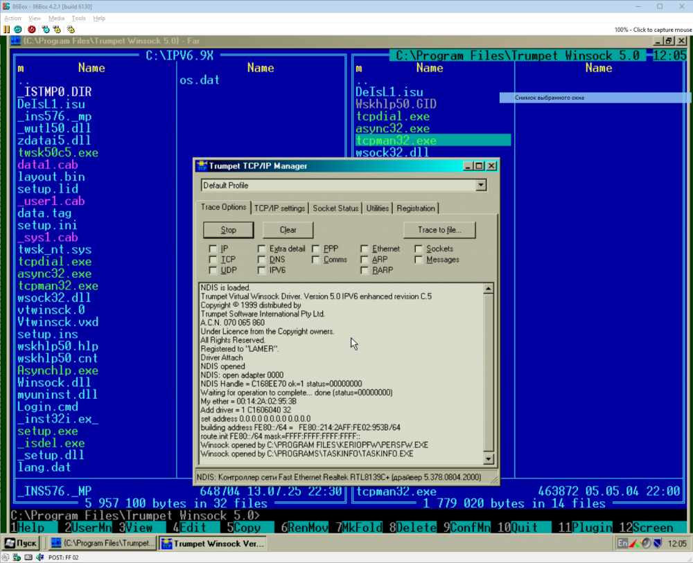 possible i already solved this "problem"... patch for Vtwinsck.vxd SIZE 179861 DATE 5.May.2004 CRC32 5c32ece0: 2741C: A9 01 00 00 00 -> 33 C0 83 C0 01 but i am not sure, that it was so simple... i cant check, is it work properly, or not. and anyway, it crack all winsock subsystem... my "9x" is 98IF, and too "updated" for this thing. so this is useless.