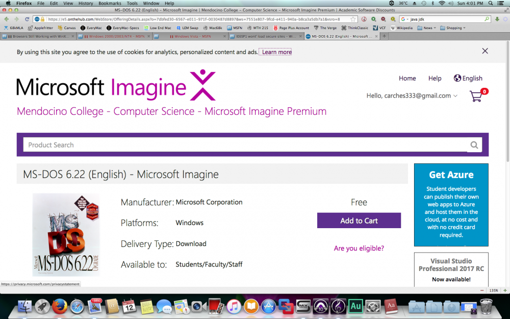 8. This is a bit off topic, but I just registered for a Microsoft Imagine account (provided to me by my school), and I can apparently download all the recent Windows versions (7, 8.x, 10, and their server counterparts) plus some other stuff. What really humored me, though, is this: Despite all their efforts to seemingly erase all the other Windows versions from existence (3.x, 9x, NT, 2k, XP and Vista, plus any variants thereof), I can apparently still get MS-DOS 6.22! A 24 year-old OS!!! c