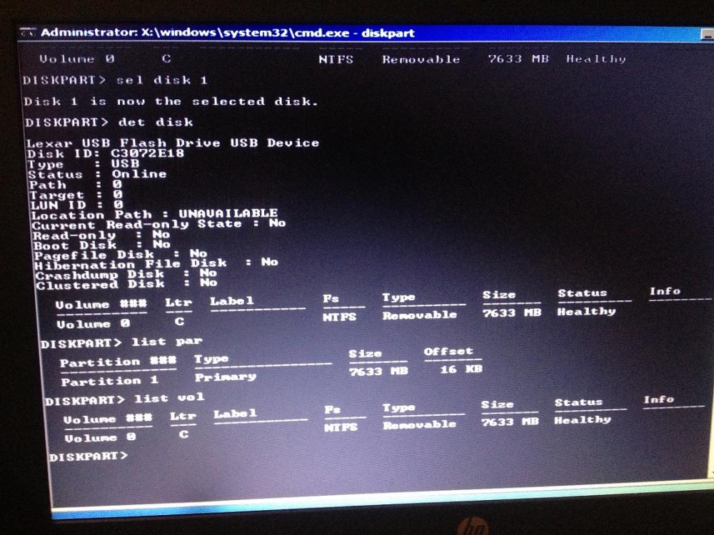 I think so. The size matches up at least and there is only the lexar 8gb connected to the laptop. Btw, that previous attempt I posted was usb boot, not apply-image method. I think all apply-image methods I've tried result in bsod after 'starting windows' animation. I will try this tonight