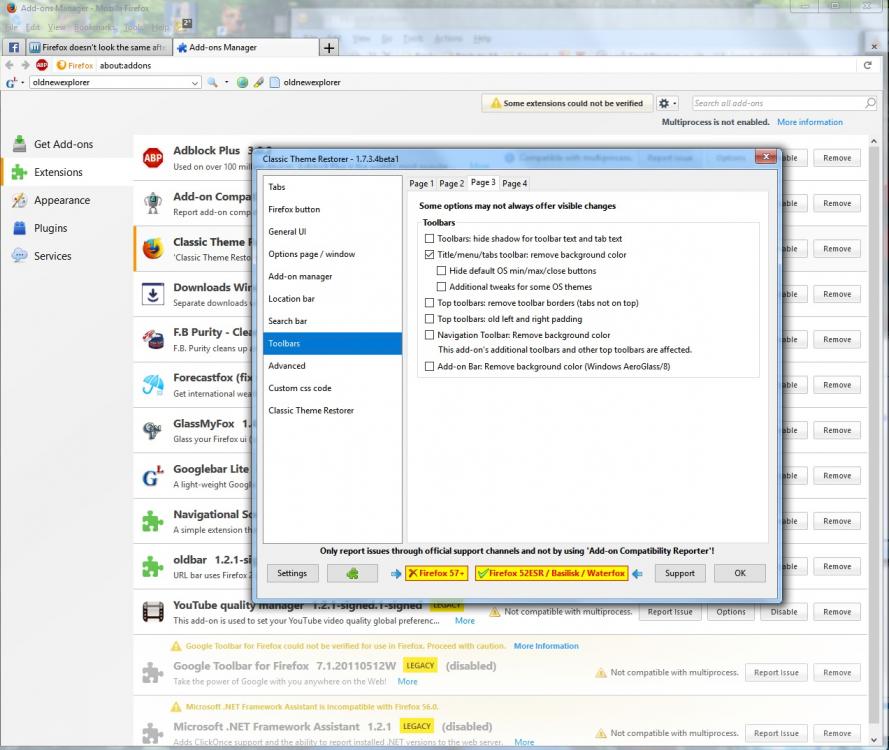 Recently my pc updated to the Fall Creators update 1709 (16299.125) for windows, I uninstalled AeroGlass before the update but forgot to uninstall uxstyle which stopped me from changing themes until I disabled the unsigned themes service (The unsigned themes service has since dissapeared for some reason). Since the update Firefox doesn't look the same as it used to, the menu bar used to have the glass effect on it but now it doesn't, previously I was using an Aero theme from Deviantart made by sagorpirbd but they don't work for me in 1709 so I am using a theme atlas image by Xemnes that I was told about elsewhere in the forum which gives me the aero borders.