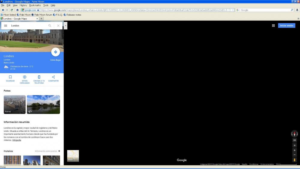 Problem solved: MyPal 28.3.1 works fine. So I´m gonna use this browser for now. Swapping browsers when a problem arise in any of them. BTW, I tried changing the settings as explained before but it didn´t work. On the other hand, some other browsers did work, like old Chrome, old Firefox and old Maxthon. Weird... because none of roytam1´s latest versions of Pale Moon browser worked on Google Maps. Thanks anyway. -