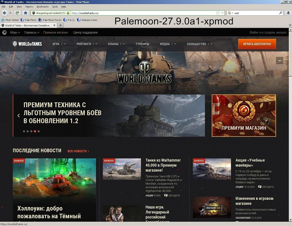 roytam1,your advice with (general.useragent.override.) helped me with sites in PM28XP build -https://worldoftanks.ru/ and https://vk.com ! I registered in about:config - general.useragent.override.vk.com;Mozilla/5.0 (Windows NT 6.1; WOW64; rv:52.9) Gecko/20100101 Firefox/52.9 (Pale Moon) general.useragent.override.worldoftanks.ru;Mozilla/5.0 (Windows NT 6.1; WOW64; rv:52.9) Gecko/20100101 Firefox/52.9 (Pale Moon) -