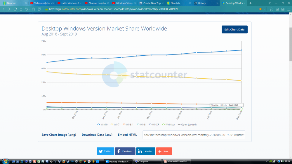 Windows Vista's Market Share was at 0.59% in july of 2019 however, it's market share is rapidly decreasing! It went from 0.59% in July to 0.42% in August and then to 0.33% in September. Two weeks later, it just sits at 0.31%. I hate to say this but.......... Windows Vista Is Doomed.