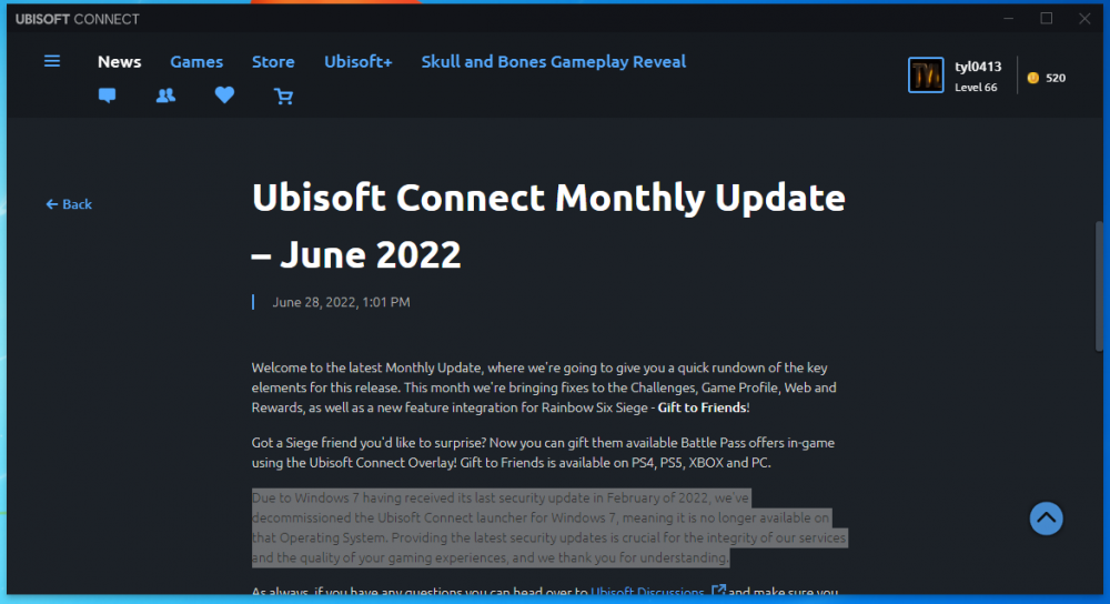 Ubisoft just keeps Ubisofting and announced drop for Windows 7 support on June 28 (announcement available on News tab of your Uplay Client), took it's sweet time logging me in today after i was logged out at around the date of the announcement, all game covers and tabs were empty along with levels and points and took a good few minutes to load instead of loading instantly like before, challenges still often don't load and game installs are stuck on "Initializing" often as well, was fine before, reinstalled latest from their site it works same, likely will break sometime in the future completely. Extremely ironic seeing this right after EA announces 7/8 support for EA Desktop which didn't even have it before (and I was sure it never will) and after the Uplay Client for XP finally breaking login a few months ago for me at least after 6+ years of it not being updated and outlasting all other launchers on the platform by at least 2 years (Origin/Steam) and up to almost 5 (Battle.net).