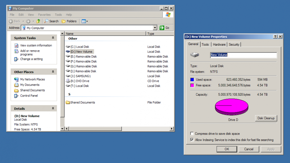 Today, I put a 5 TB HDD drive in my SATA drive enclosure (no USB involved) and I was a little surprised that I can actually use it, because I always thought it is not possible. I tried it out a long time ago and it did not work. I formatted the drive as NTFS and was able to copy data back and forth. I ran "fsutil fsinfo ntfsinfo" from the command line and a sector size of 2048 Bytes was reported. I googled for such an odd sector size and could not find a single result. By the way - the hdd is a 2,5" Seagate BarraCuda Compute 5TB. I checked a another drive. Toshiba MQ03ABB300. 3 TB. Fully accessible. Reported sector size: 1024 Bytes?!?! What is going on? I did not yet try to fill the entire to check if I can write beyond 2 TB, but I used a disc editor (wxHexEditor) and modified a some bytes at the last sectors. They are saved just fine. wxHexEditor shows the same sector sizes. 2048 Bytes for the 5 TB drive, 1024 Bytes for the 3 TB drive. I cannot use these drive on Windows 7 (they are determined as unformatted) and all my other installations of Windows XP just show the usual behaviour when plugging in drives with more than 2 TB. It's just this one Windows XP Pro installation, which magically handles these drives perfectly. Can someone solve this riddle for me? Did I install some kind of special tool and just can't remember? I attached some screenshots. Whatever it is - I want it on every of my WinXP Pro computers...