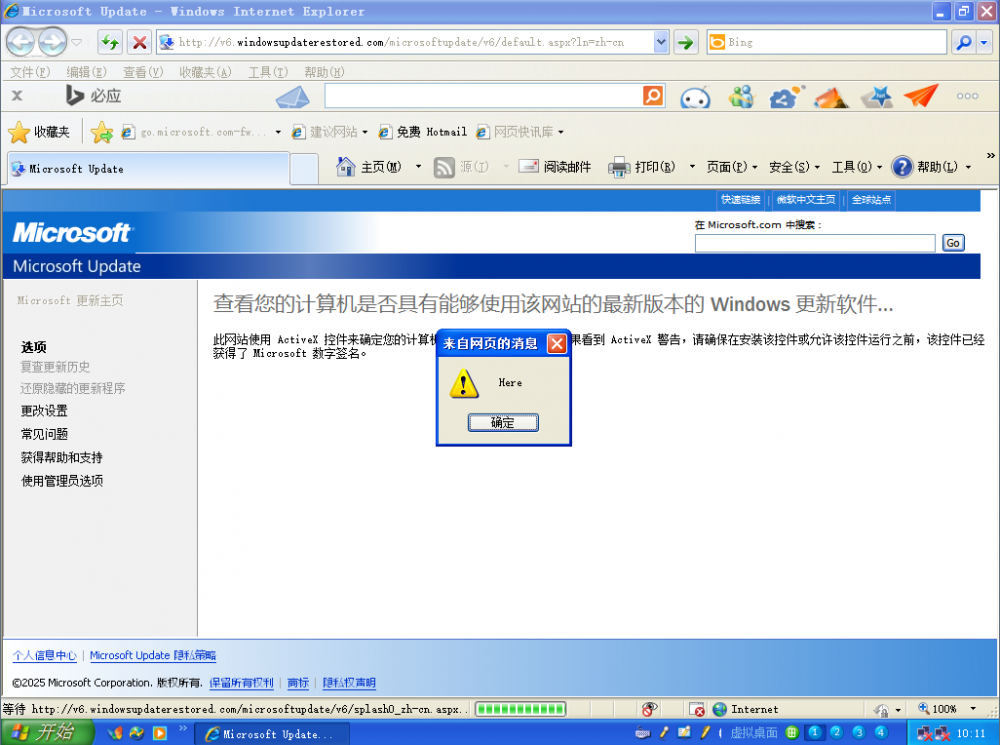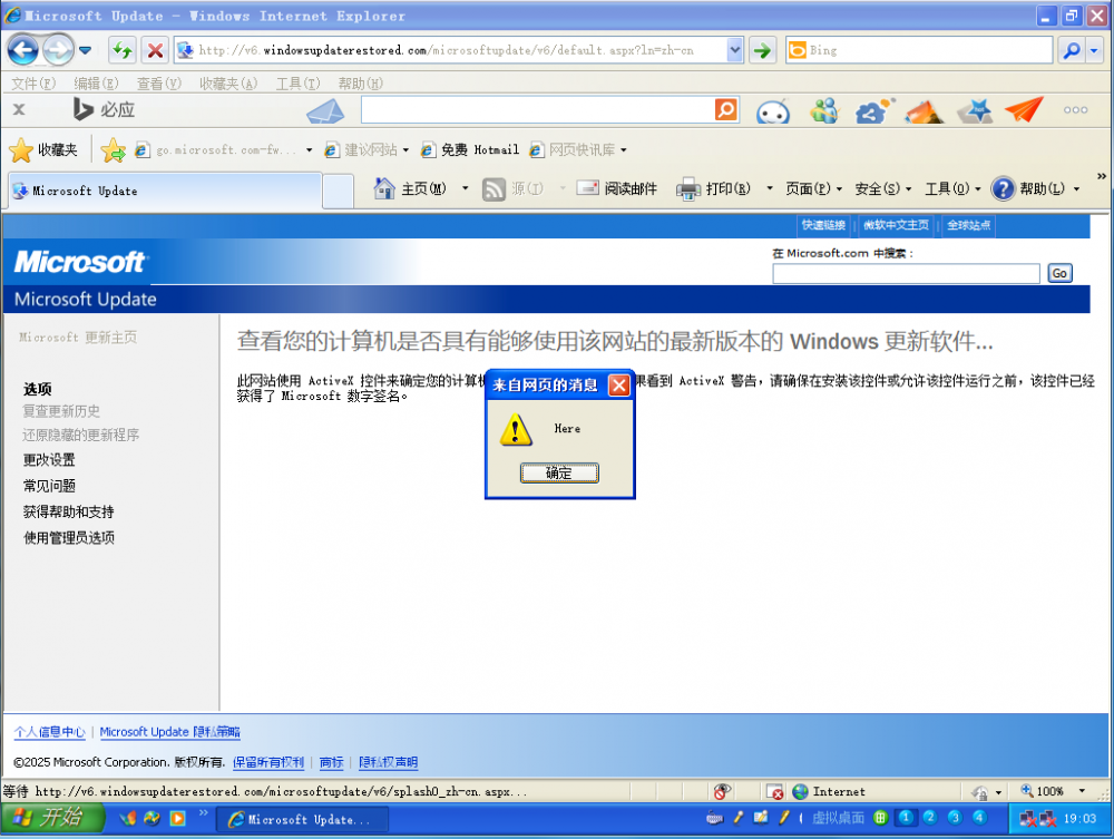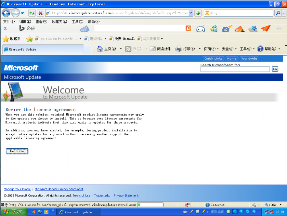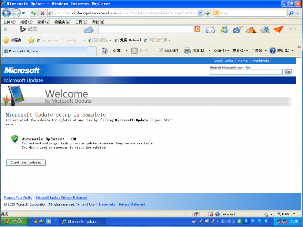 The Microsoft update v6 restored on xp can't work today, it can't get to update page after I finished the process on the pages.