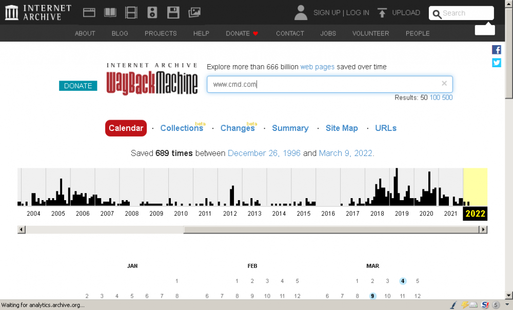While using NM28 I ran again into the "missing search engine plugins" problem (the browser integrated search bar in the upper right), espacially Google is missing. So I decided to dig deeper and finally solve the problem. All the plugins on the Pale Moon site work, except Google (try out your self: http://web.archive.org/web/20170712213834/https://addons.palemoon.org/search-plugins/) On my search about this problem I found this post: So I tried https://mycroftproject.com/search-engines.html but this didn't satisfy me, so I read about the OpenSearch standard and found out this is just a small XML file (with links, some stuff and a Base64 encoded icon in it) which has to be placed inside the folder "searchplugins" of a browser's profile. The mycroftproject XML was really, really outdated (but still functional). I recoded the icon to a proper 16*16 Base64 PNG and put the latest search URL into the XML - and yes it works fine, and has a much lower size! Please let me know if someone is interested in a mirror of properly formated search plugins, then I will add them to the New Moon (etc.) mirror -> soggi.org - tools. Additionally mirroring of all your beloved add-ons is also possible, just leave me a note (within this thread). I'm already thinking about outsourcing the mirror into an extra article where I can add more content (tips, tweaks - all this stuff which keeps myself occupied while using New Moon). --------------------------------------------- No, I won't call you paranoid (BTW I love Black Sabbath's Paranoid) - that's just longsighted! Personally I backed up whole FTP servers in the past (and hopefully will do in the future). Backing up files is extremely important in the vintage/retro computer scene. --------------------------------------------- When visiting https://web.archive.org/web/*/www.cmd.com on NM27/28 it looks like on the screenshots below. I think I have to move on and make NM28 to my daily driver, the Way Back Machine is really important to my soggi.org work! kind regards soggi -
