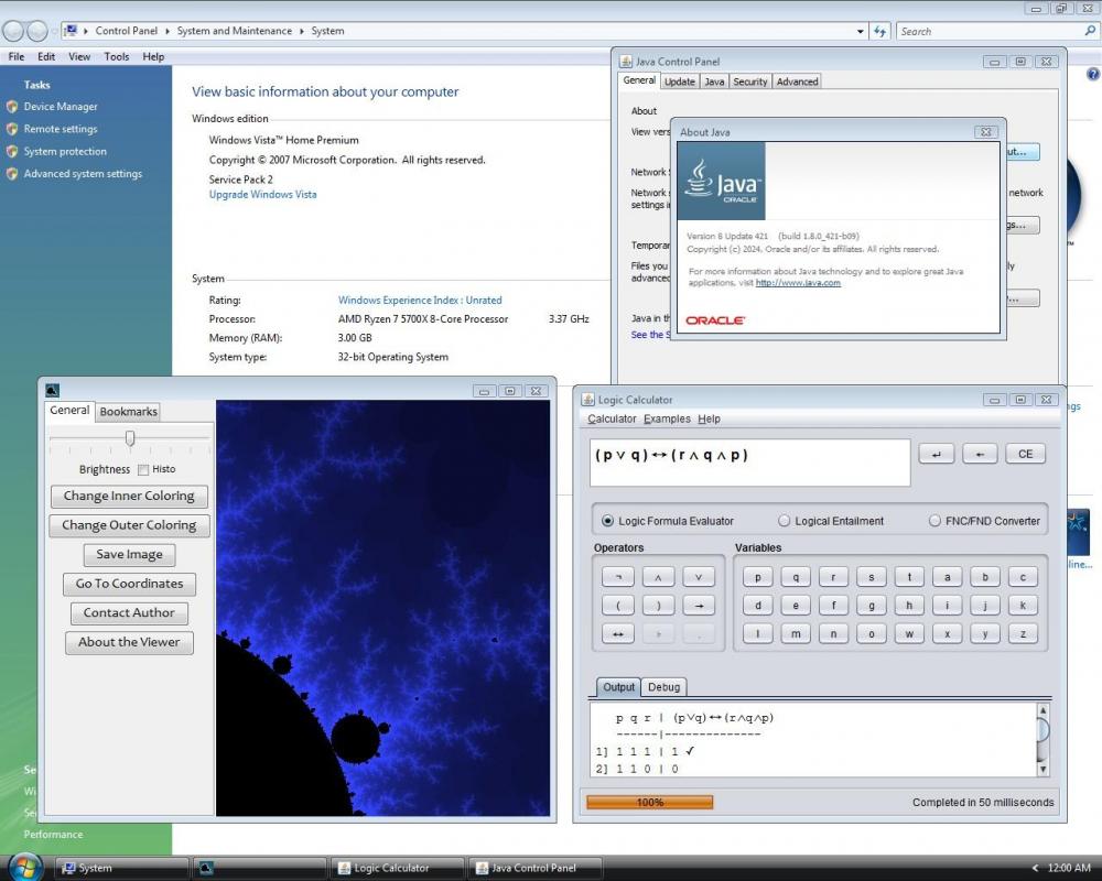 I have recently been re-testing modern versions of Java under Windows XP, having figured out many fixes and workarounds to issues that were present on these newer versions when being ran on that operating system. To be more precise, i have managed to solve a crash with keyboard input, the java control panel refusing to launch, java applets being broken, as well as JavaFX applications and its WebKit component not running. Ultimately, this has allowed me to get the latest and newest revision of Java 8, which currently is 8u421, running on XP without any major bugs or glitches. This version needs XomPie in order to run, however, instructions for slightly older versions of Java are also available, having been revised to include all of the mentioned workarounds, including JavaFX compatibility, so people can run more modern and stable versions on their original installs. These are available on my website: http://neonfloppy.sytes.net/software/winxp/java/ Moreover, Windows Vista can also run 8u421, provided Extended Kernel or XomPie are installed on the system. Previous versions have also been revised, for those still running vanilla Vista. More details here: http://neonfloppy.sytes.net/software/winvista/java/