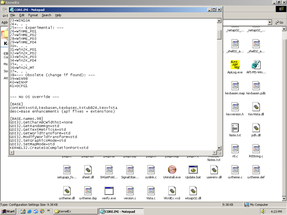 Update on Kstub825: Not sure whats going on but now both IE and Explorer works fine with Kstub825, something to do with my KernelEX/Windows installation I guess? The Kstub825.ini doesn't have enough functions to launch Firefox-based browsers by default so I had to add several functions and now it launches again.