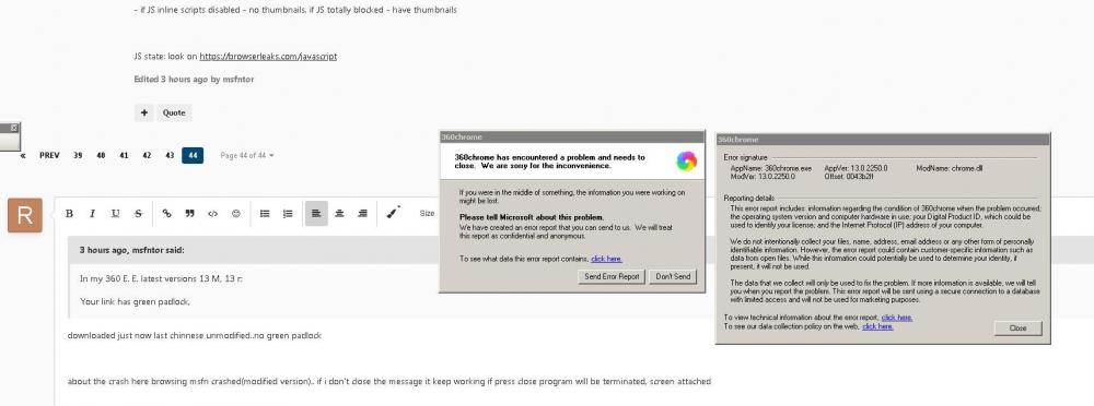 downloaded just now last chinnese unmodified..no green padlock about the crash here browsing msfn crashed(modified version).. if i don't close the message it keep working if press close program will be terminated, screen attached- 2,340 replies