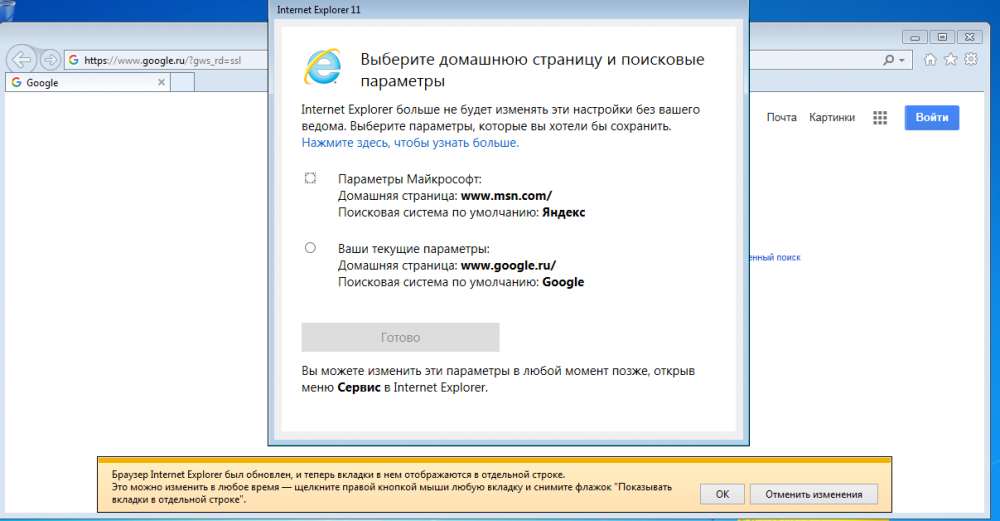 Im writing tweaker for win7, where have tweaks for a ie, most of it i did catch by regshot, but have one problem, the window with question select searcher at run once, and im cant find keys to havent this window.