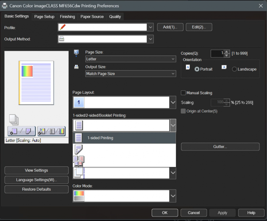 Found what looks like a Dark Magic bug with the driver for my new printer. The driver can be downloaded here: https://www.usa.canon.com/support/p/color-imageclass-mf656cdw This is the driver I installed: