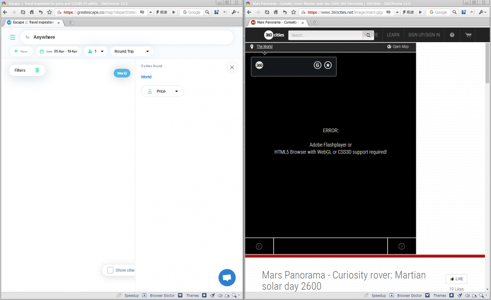 still unable to get it working.... the 1st map doesn't display webGL requirements. https://www.360cities.net/image/mars-gigapixel-panorama-curiosity-solar-day-2600?fbclid=IwAR1ELmPARSQREBBBJGMwjvMsUfpDcfWRIvn70XreSVYpr1HtgTHJXssywpg- 2,340 replies