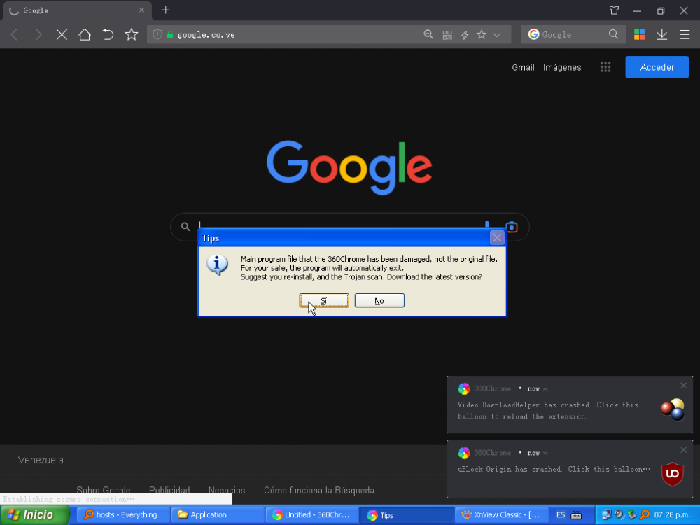 Hello friends, this is my first post here, I need to solve a problem that has me very annoyed, the truth. It is with certain programs that do not open or do not respond, an example is with 360Chrome, is the browser I always use and I have all my extensions and bookmarks and I can not retrieve them, Google Chrome 49, does not load any page. 'The only browser that works for me is Basilisk' Mystery? The Snes9x emulator doesn't open, Notepad++ shows an error related to the SciLexer.dll file, when I replace it it opens without problem, but when I restart the pc it comes back with the same error. Is it a virus problem?