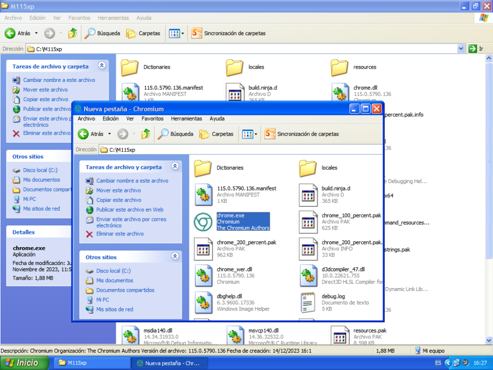 Hello everyone, I wanted to share with you a news that I found interesting: recently I was exploring on Reddit and I saw that a user has published a Chromiun 115 for Windows XP without the need to install One Core Api. I tried to run it, but was unsuccessful. However, the developer of the project claims that the browser works correctly in most cases. I leave you the link to the source so you can explore it and try it yourself: https://www.reddit.com/r/windowsxp/comments/17x01mo/chromium_115_running_on_windows_xp_without_one/ I hope you find this information useful. Best regards,