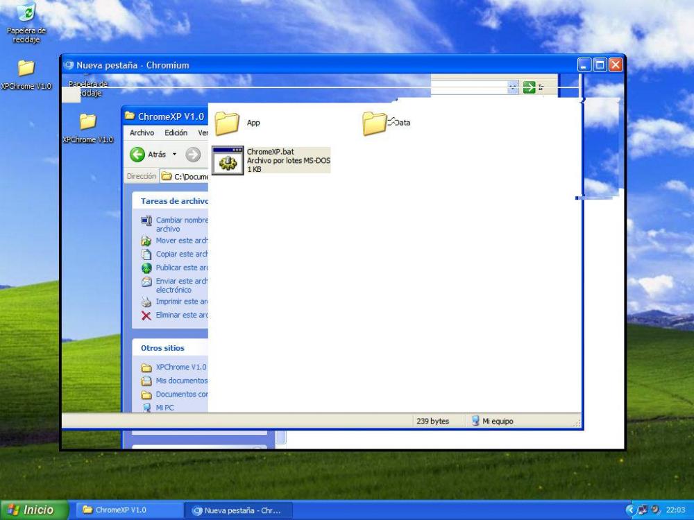 Hi, I have followed your instructions and tried closing and opening the browser several times, but it still does not work. I have performed the following steps: *I have opened the Task Manager and terminated all Chrome.exe processes. *I tried to start the browser, but it still does not open correctly, as shown in the screenshots. I have also tried downloading "XPChrome V1.0.7z" again and adding it to the path C:\ and nothing And I do not think I have problems with windows, I have installed three browsers, 360Chrome, Basilisk and Mypal68. I do not think it is hardware problems right? because I have 1gb of ram xd. -