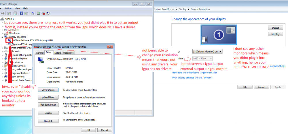 thanks for responding, sad this didnt go anywhere given the fact nvidia made sure all of us W7 users wouldnt get 30 series laptop drivers for the Ti models (unlike the windows xp modded GTX 960 driver that gave the entire 900 series fully functional drivers, or whatever it was called)