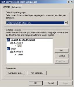 There are three steps in uninstalling CTFMON.EXE as described in Frequently asked questions about Ctfmon.exe Step1: Uninstall Alternative User Input Step2: Remove Alternative User Input Services from Text Services Step3: Run Regsvr32 /U on the Msimtf.dll and Msctf.dll Files Step1 is easy because it can be done when creating your Unattended.MST for MS Office, using ORK tools. Step3 is also easy because it's a simple batch file which can be executed after the office installation. My problem is, how do I unattendedly execute Step2? Especially when it says that the only input service that should remain installed is "English (United States)- default Keyboard United States 101", and i also want to have Greek installed, as displayed in the following picture. I am using Office 2003 SP2