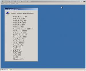1. Microsoft Office Professional 2003 2. Microsoft Proofing Tools 2003 3. Microsoft Office FrontPage 2003 4. Microsoft Office OneNote 2003 5. Microsoft Office Project 2003 6. Microsoft Office Visio 2003 7. Microsoft .NET Framework v2.0 Beta 2 8. MSN Messenger v7.0.0816 9. Shockwave and Flash Player 10. QuickTime Alternative v1.48 11. Nero Burning Rom v6.6.0.16 12. Acrobat Reader v7.0.3 13. Real Alternative v1.43 14. Active Perl v5.8.7.813 15. Microsoft PowerToys 16. PowerDVD v6.0 17. Sun Java v5.0.4 18. TextPad v4.7.3 19. WinRAR v3.42 20. DivX v6.0 21. BitDefender v8.0 Pro So proud -