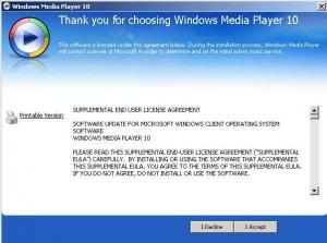 I have searched for "Windows Media Player 10". I havent found anything relevant though. I guess the proper title for such a problem would be "Thank you for choosing Windows Media Player 10" wich is the title of the window. So i created it. -