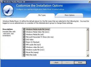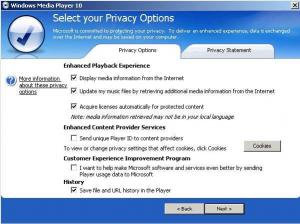 After the installation of Windows Media player 10, the first time i doulble click on a movie to play it, i get the following 3 screens. This happens only the first time. Is there a way to avoid this wizard, and just start playing the movie? Thanks