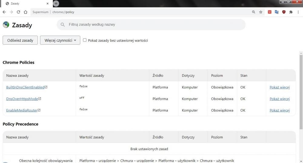 Thanks for the thread and pool. I use in Windows 7 x64: LibreWolf = 0 policies Supermium = 3 policies
