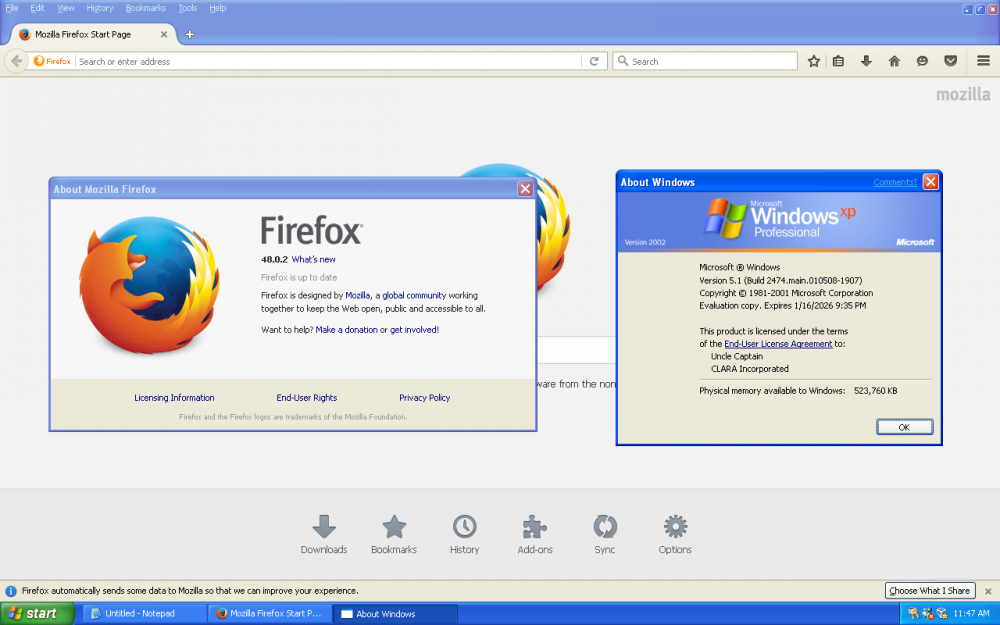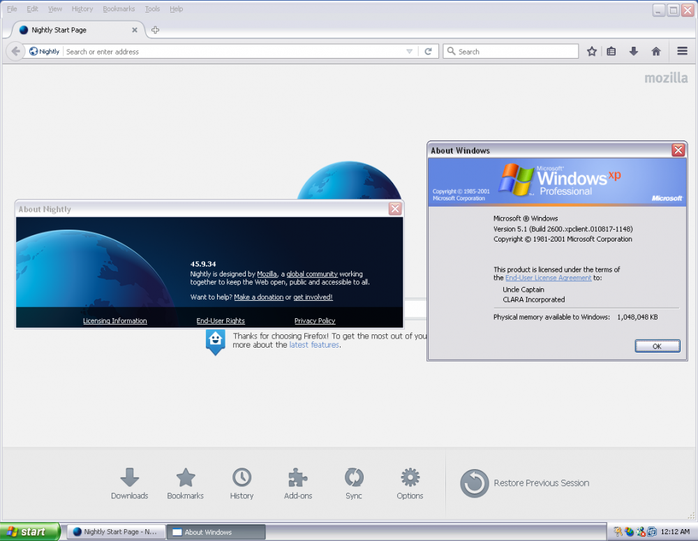 I finally managed to get Firefox 48.0.2 to work on Windows XP RTM! Notes kernelxp.dll stays in the "firefox" directories after patching, or else it will NOT work. The unofficial guide "How to get Firefox 48.0.2 / 45.9.x ESR to work on Windows XP RTM!" is now available. This guide is made by me. https://sites.google.com/view/clara-incorporated/modernization/windows-2000xp-rtmxp-sp1/firefox-48-0-2-firefox-45-9-x-esr-windows-xp-rtm
