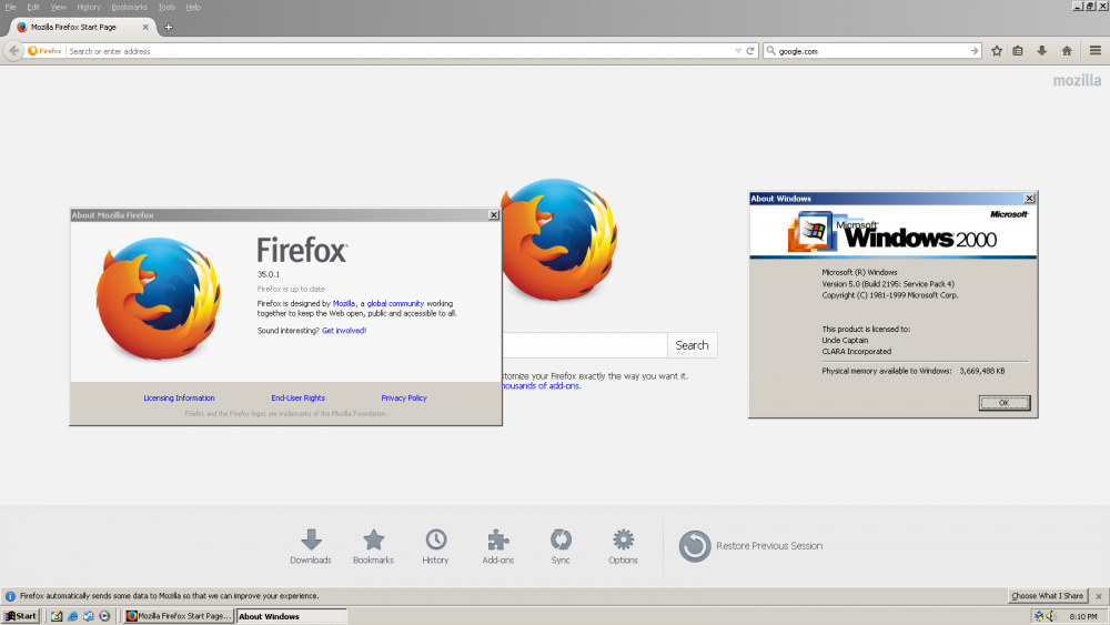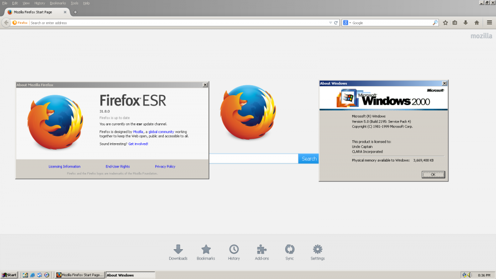 @roytam1 Okay, 1) I managed going up to Firefox 35.0.1 to work on Windows 2000 without Extended Kernel unofficially by using just kernelxp, advapixp, shellxp, and userxp wrappers from the mp10en2k package by blackwingcat, and additional dlls from windows 2000 extended kernel, and changing the MinorOperatingSystemVersion and MinorSubsystemVersion from 0001 to 0000, and leaving the MajorOperatingSystemVersion and MajorSubsystemVersion as 0000 on firefox.exe and other executables in the firefox folder. 2) I managed getting Firefox 31.8.0 ESR to work on Windows 2000 without Extended Kernel unofficially by using just kernelxp, advapixp, and shellxp wrappers from the mp10en2k package by blackwingcat, and additional dlls from windows 2000 extended kernel, and changing the MinorOperatingSystemVersion and MinorSubsystemVersion from 0001 to 0000, and leaving the MajorOperatingSystemVersion and MajorSubsystemVersion as 0000 on firefox.exe and other executables in the firefox folder. Note: The original kernelxp wrapper for windows 2000 without extended kernel from the mp10en2k package by blackwingcat have the getnumahighestnodenumber function missing for firefox 36 which used microsoft visual c++ 2013 runtime. I even tried 36.0a1 (compiled with vc2010) on Windows 2000 without extended kernel unofficially by using just kernelxp, advapixp, shellxp, and userxp wrappers from the mp10en2k package by blackwingcat, and additional dlls from windows 2000 extended kernel, and changing the MinorOperatingSystemVersion and MinorSubsystemVersion from 0001 to 0000, and leaving the MajorOperatingSystemVersion and MajorSubsystemVersion as 0000 on firefox.exe and other executables in the firefox folder, but it does not start The unofficial guide "How to get Firefox 35.0.1 / 31.8.0 ESR to work on Windows 2000 without Extended Kernel!" is now available. This guide is made by me. https://sites.google.com/view/clara-incorporated/modernization/windows-2000xp-rtmxp-sp1/firefox-35-0-1-firefox-31-8-0-on-windows-2000-without-extended-kernel