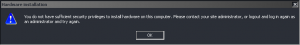 Here is a screenshot of the two messages I receive. When I plug in the device and it is recognized and then when I click Cancel I receive the second one about not having permission. All the USB devices work I just would like to prevent these messages from appearing for the user. I also checked my local security policy and Admins, Power Users and Users have rights to load and unload device drivers so I cannot figure out why Windows has to display this messages. Any other comments or suggestions?
