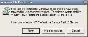 Your file is a trojan.. i have already post it on ur thread.. My Antivirus becomes angry with ur file.. i am not looking this method.. i just wanted this screen never to popup (permanently) with any of my activities I also wan't all this in my unattended CD.. not manually after installation of windows. i don't prefer to edit these files manually my registry setting is as in attached Pic : SFCDisable is changed back to 0 by some programs :so i tried SFCSetting......... but still WFP windows popups... i am using rvyans patched sfc_os.dll